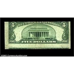 Fr. 1962-A $5 1950A Federal Reserve Note. Very Fine.The reverse printing is shifted high, with a qua