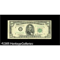 <B>Fr. 1963-C $5 1950B Federal Reserve Note. Very Fine.</B></I><BR>This mismatched prefix example looks to have been stuck between the D and E which has produced this most interesting error. Lot:15217