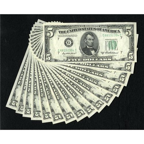 <B>Fr. 1963-G $5 1950B Federal Reserve Notes. 15 Examples Choice Crisp Uncirculated.</B></I><BR>This pack fresh group includes a run of eleven consecutive followed with two different pairs of consecutive notes. Don't miss your chance on these beauties.<BR><BR><BR><b>Shipping:</b> Coins & Currency (<a target="_blank" href="http://www.heritageauctions.com/common/shipping.php">view shipping information</a>)