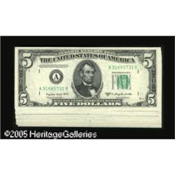 <B>Fr. 1964-A-L $5 1950C Federal Reserve Notes. Complete Regular Block Set. About Uncirculated or Better.</B></I><BR>Only the Dallas note will grade less than Choice in this block set collection.<BR> 15 notes Lot:15953