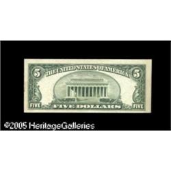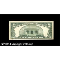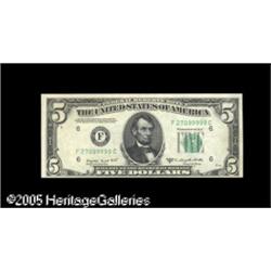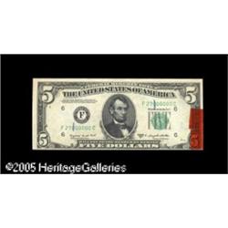 <B>Fr. 1964-F $5 1950C Federal Reserve Notes. Two Examples. Choice Crisp Uncirculated.</B></I> Here is a fascinating and perhaps unique pair of notes, the first bearing serial number F27099999C and the second (and consecutive piece) misnumbered as F27000000C. The misnumbered note was caught by the BEP inspector, who then blue penciled the correct number in, and put a red rejection sticker on the note. However, the error note escaped the BEP. Hard to estimate, but a wonderful pair for the error specialist.<BR> 2 notes Lot:15441