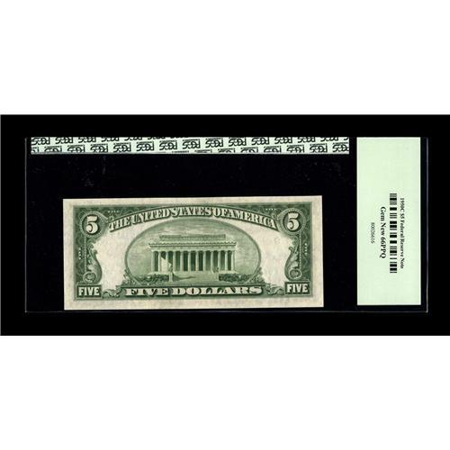 <B>Fr. 1964-I* $5 1950C Federal Reserve Note. PCGS Gem New 66PPQ.</B></I><BR>An utterly original and absolutely flawless example of this very scarce Minneapolis star which had a meager printing of only 720,000. The margins are superb with deep embossing and radiant ink colors found on this fresh and fabulous star. These paper surfaces are truly as nice as one will ever find for this scarce issue and the Oakes value of $200 in CU does not do justice to an example of this quality.<BR><BR><b>Shipping:</b> Coin/Currency (<a target="_blank" href="http://www.heritageauctions.com/common/shipping.php">view shipping information</a>)