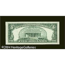 Fr. 1966-G* $5 1950-E Federal Reserve Note. Superb Gem <B>Fr. 1966-G* $5 1950-E Federal Reserve Note. Gem Crisp Uncirculated.</B></I><BR>With just 1,080,000 notes printed Chicago is one of the scarcest districts to issue stars in this series. Pack fresh and well centered. <BR><BR><B>Important notice:</B> Heritage usually auctions material at the rate of 200-250 lots per hour. On some occasions eBay Live bid software or the Internet may not be able to keep up with the pace of the auction. We recommend placing a realistic absentee bid now as insurance to avoid disappointment. Occasionally the auctioneer may eliminate or reject an eBay Live bid, and the auctioneer may also reopen a lot after the close of the eBay live bidding (usually because we missed an audience bid), and may reject your bid even if it shows you as the winning bidder. By bidding via eBay Live, you agree that Heritage may award the lot to another bidder at its sole discretion under the circumstances described above or any other reasonable circumstances. Since eBay bids are not shown to us until we open the lot on the floor, we treat those bids just like floor bids. In most cases the floor responds before the eBay bid is presented to us, due to Internet lag time, so for consistency we have made it a policy that floor bids are always considered first over tie eBay live bids. Also please note that all Heritage lots purchased through eBay Live carry a 20% Buyer's Premium. Please make sure you read the Terms and Conditions before you bid. This lot is being auctioned in conjunction with a live floor auction by Heritage Galleries & Auctioneers. All final auction and invoice information will be supplied by Heritage Galleries & Auctioneers, and all other information should be considered preliminary. Lot:16341