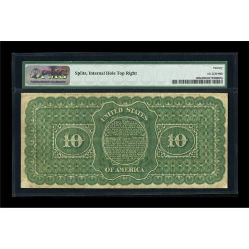 <B>Fr. 196a $10 1863 Interest Bearing Note PMG Very Fine 20.</B></I> A pleasing example which may be the only one known note to carry the stamped date of May 14, 1864. The only other known note with this date is the $20 listed in lot 14201 in this auction. The exact reason these 1863 issues were stamped with this date is still unclear and perhaps this information is hidden in the extensive Treasury records of the day. PMG has commented about splits and an internal hole at top right.<BR><BR><b>Shipping:</b> Coins & Currency (<a target="_blank" href="http://www.heritageauctions.com/common/shipping.php">view shipping information</a>)