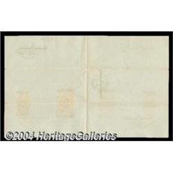 Fr. 197 Correspondence Concerning the Original Plates. A Treasury Department National Currency Bureau letter dated February 5, 1864 detailing tiny "private marks" that have been placed on the plates for the one year 5% $20 Interest Bearing note of 1864. This letter is signed by James Duthie. It details his placing of miniscule marks on the plate prior to production of the notes. The two vignettes have been clipped from a proof sheet and glued to the letter to illustrate the placement of the miniscule marks. The only item of its type that we have ever seen and an irreplaceable piece of currency history that belongs in a definitive collection. <BR><BR><B>Important notice:</B> Heritage usually auctions material at the rate of 200-250 lots per hour. On some occasions eBay Live bid software or the Internet may not be able to keep up with the pace of the auction. We recommend placing a realistic absentee bid now as insurance to avoid disappointment. Occasionally the auctioneer may eliminate or reject an eBay Live bid, and the auctioneer may also reopen a lot after the close of the eBay live bidding (usually because we missed an audience bid), and may reject your bid even if it shows you as the winning bidder. By bidding via eBay Live, you agree that Heritage may award the lot to another bidder at its sole discretion under the circumstances described above or any other reasonable circumstances. Since eBay bids are not shown to us until we open the lot on the floor, we treat those bids just like floor bids. In most cases the floor responds before the eBay bid is presented to us, due to Internet lag time, so for consistency we have made it a policy that floor bids are always considered first over tie eBay live bids. Also please note that all Heritage lots purchased through eBay Live carry a 20% Buyer's Premium. Please make sure you read the Terms and Conditions before you bid. <BR><BR><B>IMPORTANT ANNOUNCEMENT ABOUT RESERVES:</B> Heritage now divulges all reserves on its web site 7 days before every auction. If you want to know whether the reserve on this lot has been met, and if not, what the reserve amount is, please visit this lot page on the HeritageCoin.com web site, or email: bid@HeritageGalleries.com
