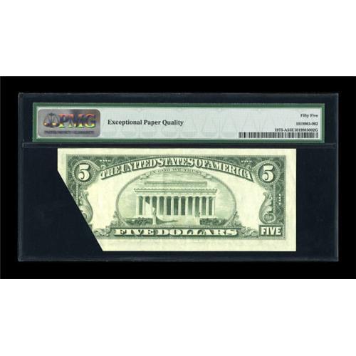 <B>Fr. 1973-A $5 1974 Federal Reserve Note. PMG About Uncirculated 55 EPQ.</B></I><BR> Light handling is noticed on this pleasing foldover from the Boston district.<BR><BR><b>Shipping:</b> Coins & Currency (<a target="_blank" href="http://www.heritageauctions.com/common/shipping.php">view shipping information</a>)