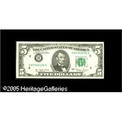 <B>Fr. 1975-A $5 1977A Federal Reserve Note. Extremely Fine-About Uncirculated.</B></I><BR>A great two-digit mismatch H67346126/H67346056. Lot:15211