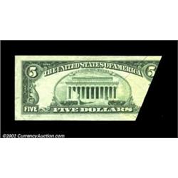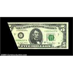 Fr. 1975-C $5 1977A Federal Reserve Note. Very Fine-Extremely Fine.A dramatic foldover that caused part of the reverse design to be printed on the front. Important notice: We expect to be auctioning lots at the rate of 200-250 per hour. Sometimes eBay Premier live bid software cannot keep up with that pace, so we strongly recommend that you place a realistic proxy bid now as insurance to avoid disappointment. Also please note that all Heritage/CAA lots purchased through eBay Premier carry a 20% Buyer's Premium. Please make sure you read the Terms and Conditions.