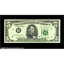 Fr. 1975-H $5 1977A Federal Reserve Note. Extremely Fine.This serial number H67346125A/H67345847A mismatch circulated for a while before anyone noticed. Important notice: We expect to be auctioning lots at the rate of 200-250 per hour. Sometimes eBay Premier live bid software cannot keep up with that pace, so we strongly recommend that you place a realistic proxy bid now as insurance to avoid disappointment. Also please note that all Heritage/CAA lots purchased through eBay Premier carry a 20% Buyer's Premium. Please make sure you read the Terms and Conditions.