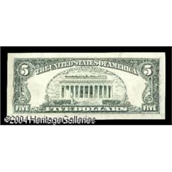 Fr. 1976-? $5 1981 Federal Reserve Note. Gem Crisp Un <B>Fr. 1976-? $5 1981 Federal Reserve Note. Gem Crisp Uncirculated.</B></I> Missing the third printing, although the embossing suggests the district here is Kansas City. <BR><BR><B>Important notice:</B> Heritage usually auctions material at the rate of 200-250 lots per hour. On some occasions eBay Live bid software or the Internet may not be able to keep up with the pace of the auction. We recommend placing a realistic absentee bid now as insurance to avoid disappointment. Occasionally the auctioneer may eliminate or reject an eBay Live bid, and the auctioneer may also reopen a lot after the close of the eBay live bidding (usually because we missed an audience bid), and may reject your bid even if it shows you as the winning bidder. By bidding via eBay Live, you agree that Heritage may award the lot to another bidder at its sole discretion under the circumstances described above or any other reasonable circumstances. Since eBay bids are not shown to us until we open the lot on the floor, we treat those bids just like floor bids. In most cases the floor responds before the eBay bid is presented to us, due to Internet lag time, so for consistency we have made it a policy that floor bids are always considered first over tie eBay live bids. Also please note that all Heritage lots purchased through eBay Live carry a 20% Buyer's Premium. Please make sure you read the Terms and Conditions before you bid. This lot is being auctioned in conjunction with a live floor auction by Heritage Galleries & Auctioneers. All final auction and invoice information will be supplied by Heritage Galleries & Auctioneers, and all other information should be considered preliminary. Lot:16071