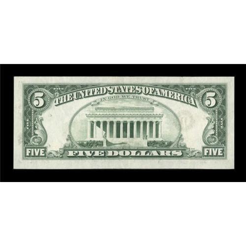 <B>Fr. 1976-D $5 1981 Federal Reserve Note. About Uncirculated.</B></I><BR> Both the green and black third printings have been over applied.<BR><BR><b>Shipping:</b> Coins & Currency (<a target="_blank" href="http://www.heritageauctions.com/common/shipping.php">view shipping information</a>)