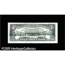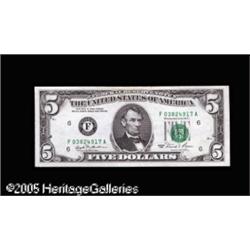 <B>Fr. 1976-F $5 1981 Federal Reserve Note. About Uncirculated.</B></I> The back of this $5 received a second pass through the presses. Lot:15445