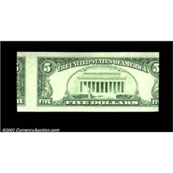 Fr. 1976-J $5 1981 Federal Reserve Note. Choice Crisp Uncirculated. The face is perfect, but the reverse is skewed so badly that parts of two notes are present. Important notice: We expect to be auctioning lots at the rate of 200-250 per hour. Sometimes eBay Premier live bid software cannot keep up with that pace, so we strongly recommend that you place a realistic proxy bid now as insurance to avoid disappointment. Also please note that all Heritage/CAA lots purchased through eBay Premier carry a 20% Buyer's Premium. Please make sure you read the Terms and Conditions.