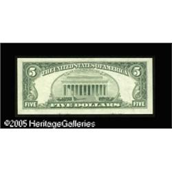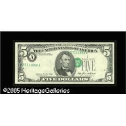 <B>Fr. 1978-A $5 1985 Federal Reserve Note. Choice About New.</B></I><BR> The entire third print is dramatically shifted high and left with the right hand serial number and the green seal entering the portrait area. Lot:15246