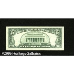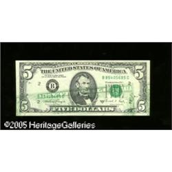 <B>Fr. 1980-B $5 1988A Federal Reserve Note. Very Fine-Extremely Fine.</B></I> The bottom half of this $5 is a back to face upside down offset. Lot:15328