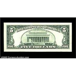 Fr. 1980-L $5 1988A Federal Reserve Note. Choice Crisp Uncirculated. A shifted third printing has caused the misalignment which joins this note to the piece adjacent to it on the sheet. Important notice: We expect to be auctioning lots at the rate of 200-250 per hour. Sometimes eBay Premier live bid software cannot keep up with that pace, so we strongly recommend that you place a realistic proxy bid now as insurance to avoid disappointment. Also please note that all Heritage/CAA lots purchased through eBay Premier carry a 20% Buyer's Premium. Please make sure you read the Terms and Conditions.