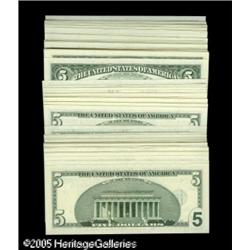 <B>Fr. 1984/85 (63) $5 1995 Federal Reserve Notes. Partial Block Set. Choice Crisp Uncirculated or Better.</B></I><BR>This partial block set needs only the GC and GD blocks for completion. The examples in this set exhibit beautiful margins along with flawless paper surfaces.<BR><B>Fr. 1987-A-L (50) $5 1999 Federal Reserve Notes. Partial Block Set. Choice Crisp Uncirculated or Better.</B></I><BR>This set needs only the BIA, BJ* and BK* blocks for completion.<BR><B>Fr. 1988-A-L (9) $5 2001 Federal Reserve Notes. Choice Crisp Uncirculated or Better.</B></I><BR>This partial block set includes the following blocks: (CAA, CBA, CBB, CCA, CDA, CFA, CGB, CHA & CKA).<BR> 113 notes Lot:15970