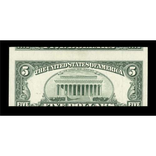 <B>Fr. 1984-B $5 1995 Federal Reserve Note. Crisp Uncirculated.</B></I><BR> This pleasing miscut affects both the front and back of the note. A bit of teller handling at left accounts for the grade.<BR><BR><b>Shipping:</b> Coins & Currency (<a target="_blank" href="http://www.heritageauctions.com/common/shipping.php">view shipping information</a>)