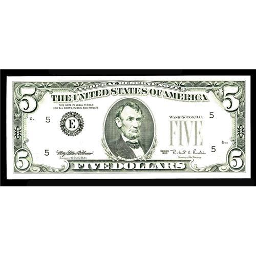 Fr. 1984-E $5 1995 FRN. Partial Third Print. Gem UNC. Fr. 1984-E $5 1995 Federal Reserve Note. Gem C