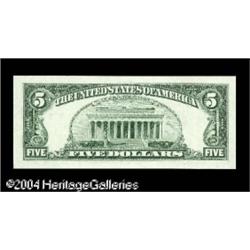 Fr. 1984-E $5 1995 Federal Reserve Note. Gem Crisp Un <B>Fr. 1984-E $5 1995 Federal Reserve Note. Gem Crisp Uncirculated.</B></I> A crackling fresh example which is missing just about all of the green ink from the third printing. <BR><BR><B>Important notice:</B> Heritage usually auctions material at the rate of 200-250 lots per hour. On some occasions eBay Live bid software or the Internet may not be able to keep up with the pace of the auction. We recommend placing a realistic absentee bid now as insurance to avoid disappointment. Occasionally the auctioneer may eliminate or reject an eBay Live bid, and the auctioneer may also reopen a lot after the close of the eBay live bidding (usually because we missed an audience bid), and may reject your bid even if it shows you as the winning bidder. By bidding via eBay Live, you agree that Heritage may award the lot to another bidder at its sole discretion under the circumstances described above or any other reasonable circumstances. Since eBay bids are not shown to us until we open the lot on the floor, we treat those bids just like floor bids. In most cases the floor responds before the eBay bid is presented to us, due to Internet lag time, so for consistency we have made it a policy that floor bids are always considered first over tie eBay live bids. Also please note that all Heritage lots purchased through eBay Live carry a 20% Buyer's Premium. Please make sure you read the Terms and Conditions before you bid. This lot is being auctioned in conjunction with a live floor auction by Heritage Galleries & Auctioneers. All final auction and invoice information will be supplied by Heritage Galleries & Auctioneers, and all other information should be considered preliminary. Lot:16119