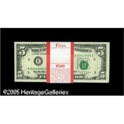 <B>Fr. 1984-E $5 1995 Federal Reserve Notes. Original Pack of 100. Gem Crisp Uncirculated.</B></I><BR><B>Fr. 1985-D $5 1995 Federal Reserve Notes. Original Pack of 100. Gem Crisp Uncirculated.</B></I><BR>The Cleveland $5s were produced in Fort Worth.<BR> 200 notes Lot:15973