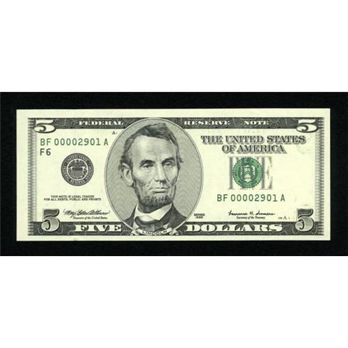 Fr. 1987-F $5 1999 Federal Reserve Note. Choice