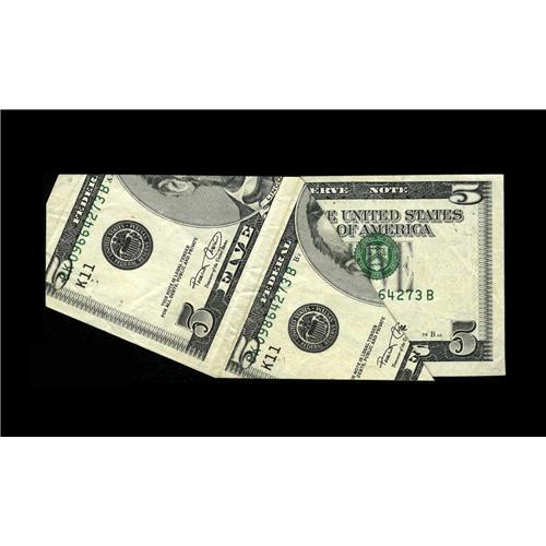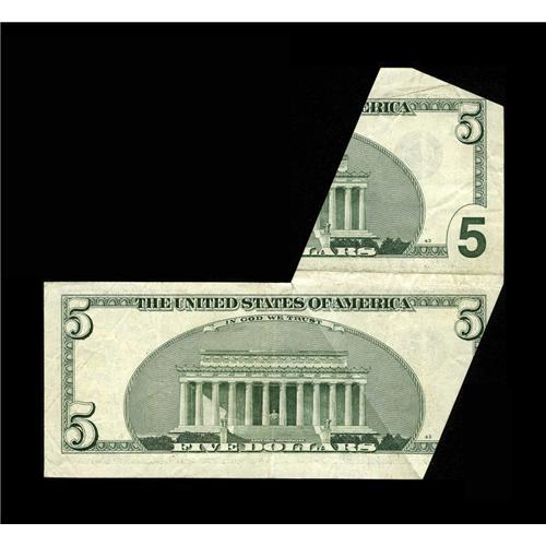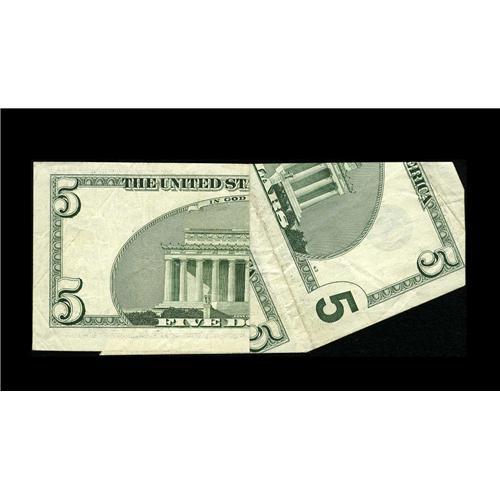 <B>Fr. 1988-K $5 2001 Federal Reserve Note. Very Fine-Extremely Fine.</B></I><BR>This is the one of the wildest cutting errors you will ever see. In fact, this is the new Friedberg plate note for this class of errors in the recently released 18th edition. This spectacular example contains most of the primary note, plus about 40% of the top adjacent note, a shifted upwards third printing, and extra selvage at top. The primary note has a tiny tear that was a result of the production of this error. A lot of the folds of this note are also associated with producing the error, therefore they are ignored in the determination of the grade. This Dallas error is a great item that will be the center piece of the collection it enters.<BR><BR><b>Shipping:</b> Coin/Currency (<a target="_blank" href="http://www.heritageauctions.com/common/shipping.php">view shipping information</a>)
