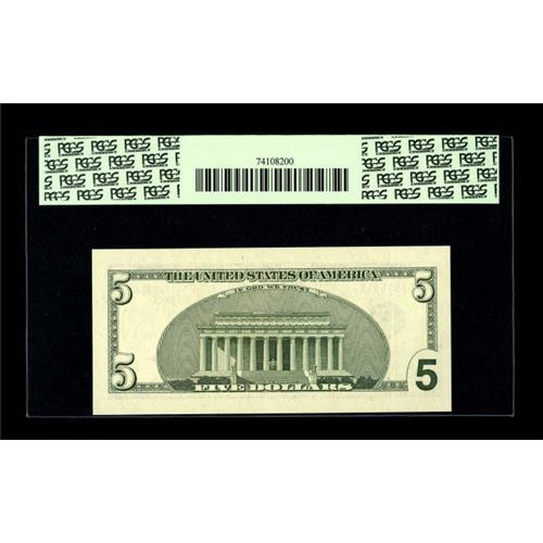 Fr. 1989-G* $5 2003 Federal Reserve Note. PCGS Perfect