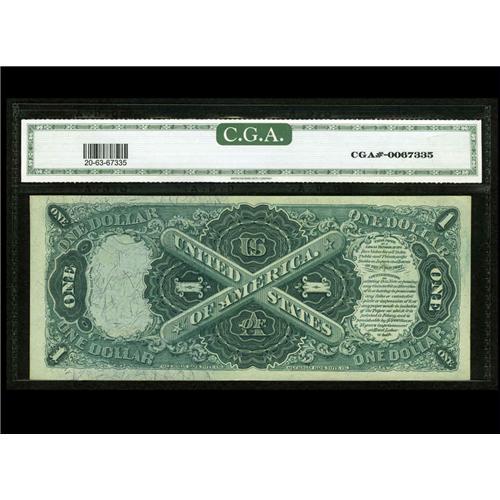 <B>Fr. 20 $1 1875 Legal Tender CGA Choice Uncirculated 63.</B></I> The colors are super on this note that appears to be a Gem in every respect but for its top face margin, which is quite close all the way across.