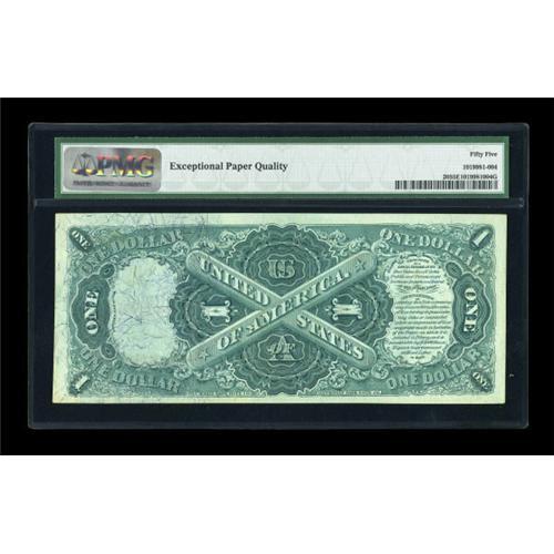 <B>Fr. 20 $1 1875 Legal Tender PMG About Uncirculated 55 EPQ.</B></I> Well printed and with terrific color. A hard, broad corner-fold seems to have accounted for the grade. <BR><BR><b>Shipping:</b> Coins & Currency (<a target="_blank" href="http://www.heritageauctions.com/common/shipping.php">view shipping information</a>)