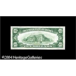 Fr. 2000-D $10 1928 Federal Reserve Note. Very Choice <B>Fr. 2000-D $10 1928 Federal Reserve Note. Very Choice Crisp Uncirculated.</B></I><BR>Crackling fresh, boldly embossed, and just lacking a broader bottom margin from the Gem grade. <BR><BR><B>Important notice:</B> Heritage usually auctions material at the rate of 200-250 lots per hour. On some occasions eBay Live bid software or the Internet may not be able to keep up with the pace of the auction. We recommend placing a realistic absentee bid now as insurance to avoid disappointment. Occasionally the auctioneer may eliminate or reject an eBay Live bid, and the auctioneer may also reopen a lot after the close of the eBay live bidding (usually because we missed an audience bid), and may reject your bid even if it shows you as the winning bidder. By bidding via eBay Live, you agree that Heritage may award the lot to another bidder at its sole discretion under the circumstances described above or any other reasonable circumstances. Since eBay bids are not shown to us until we open the lot on the floor, we treat those bids just like floor bids. In most cases the floor responds before the eBay bid is presented to us, due to Internet lag time, so for consistency we have made it a policy that floor bids are always considered first over tie eBay live bids. Also please note that all Heritage lots purchased through eBay Live carry a 20% Buyer's Premium. Please make sure you read the Terms and Conditions before you bid. This lot is being auctioned in conjunction with a live floor auction by Heritage Galleries & Auctioneers. All final auction and invoice information will be supplied by Heritage Galleries & Auctioneers, and all other information should be considered preliminary. Lot:16344