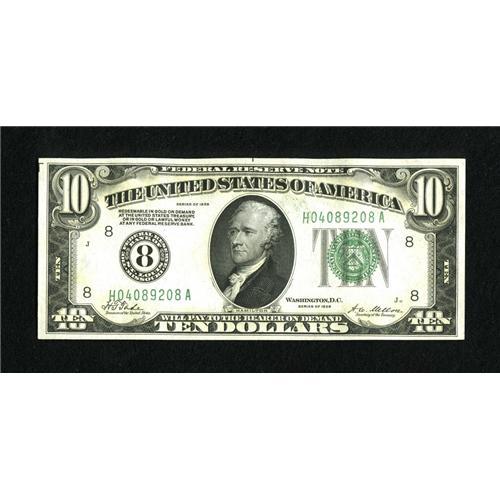 Fr. 2000-H $10 1928 Federal Reserve Note. Very C