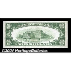 Fr. 2002-G* $10 1928-B Federal Reserve Note. Choice Crisp Uncirculated.A very fresh and beautifully printed example of this scarce star note. With a bit better face centering this would be an absolute gem. <BR><BR><B>Important notice:</B> Heritage usually auctions material at the rate of 200-250 lots per hour. On some occasions eBay Live bid software or the Internet may not be able to keep up with the pace of the auction. We recommend placing a realistic absentee bid now as insurance to avoid disappointment. Occasionally the auctioneer may eliminate or reject an eBay Live bid, and the auctioneer may also reopen a lot after the close of the eBay live bidding (usually because we missed an audience bid), and may reject your bid even if it shows you as the winning bidder. By bidding via eBay Live, you agree that Heritage may award the lot to another bidder at its sole discretion under the circumstances described above or any other reasonable circumstances. Since eBay bids are not shown to us until we open the lot on the floor, we treat those bids just like floor bids. In most cases the floor responds before the eBay bid is presented to us, due to Internet lag time, so for consistency we have made it a policy that floor bids are always considered first over tie eBay live bids. Also please note that all Heritage lots purchased through eBay Live carry a 20% Buyer's Premium. Please make sure you read the Terms and Conditions before you bid. <BR><BR><B>IMPORTANT ANNOUNCEMENT ABOUT RESERVES:</B> Heritage now divulges all reserves on its web site 7 days before every auction. If you want to know whether the reserve on this lot has been met, and if not, what the reserve amount is, please visit this lot page on the HeritageCoin.com web site, or email: bid@HeritageGalleries.com