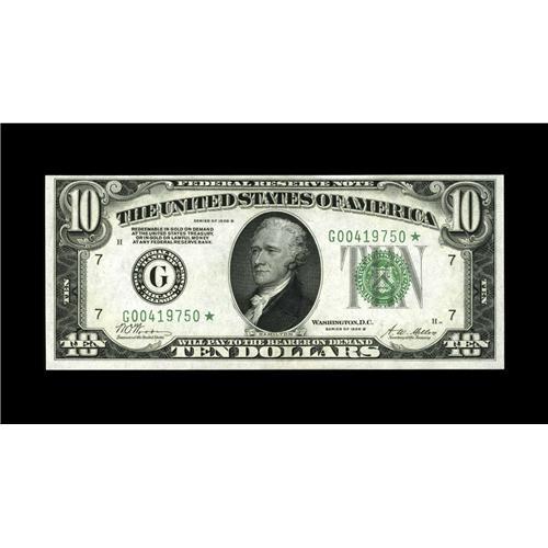 <B>Fr. 2002-G* $10 1928B DGS Federal Reserve Star Note. Choice Crisp Uncirculated.</B></I><BR>A snappy star example from Chicago, with what appears to be a paper clip indentation at upper left, or strictly speaking, perhaps the note has had a paper clip relationship at one time. Please don't tell the Fives.<BR><BR><b>Shipping:</b> Coin/Currency (<a target="_blank" href="http://www.heritageauctions.com/common/shipping.php">view shipping information</a>)