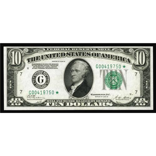 <B>Fr. 2002-G* $10 1928B Federal Reserve Note. Choice Crisp Uncirculated.</B></I><BR>Consecutive to the note immediately above and every bit as nice in all respects.