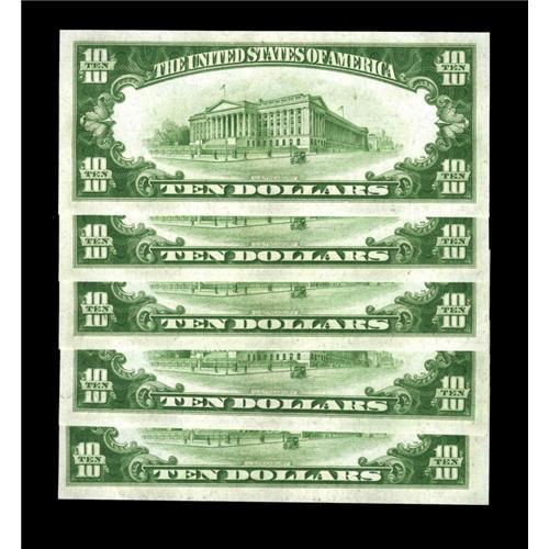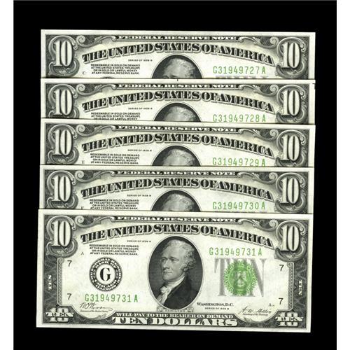 Fr. 2002-G $10 1928B Federal Reserve Notes. Five Consec Fr. 2002-G $10 1928B Federal Reserve Notes.