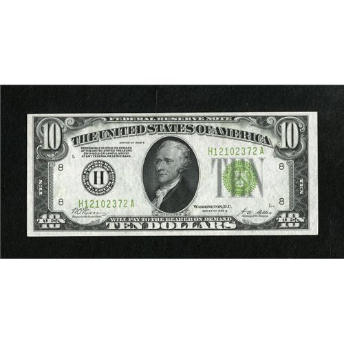 Fr. 2002-H $10 1928B Light Green Seal Federal Re