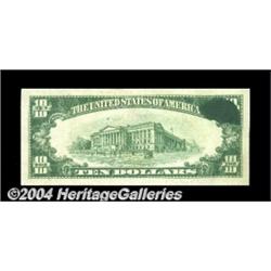 Fr. 2003-D $10 1928-C Federal Reserve Note. Gem Crisp Uncirculated.A very scarce note in any grade, and prohibitively rare in this state of preservation. This is a beautiful example which, rather incredibly for this issue, has still retained some of its original embossing. It also is an error note, with the back showing a good size ink smear, making it likely the only error 1928C $10 to exist. Knowledgeable collectors who appreciate the rarity of this Cleveland district issue will likely ensure that this lovely note is sees the hammer fall somewhere in the range of... <BR><BR><B>Important notice:</B> Heritage usually auctions material at the rate of 200-250 lots per hour. On some occasions eBay Live bid software or the Internet may not be able to keep up with the pace of the auction. We recommend placing a realistic absentee bid now as insurance to avoid disappointment. Occasionally the auctioneer may eliminate or reject an eBay Live bid, and the auctioneer may also reopen a lot after the close of the eBay live bidding (usually because we missed an audience bid), and may reject your bid even if it shows you as the winning bidder. By bidding via eBay Live, you agree that Heritage may award the lot to another bidder at its sole discretion under the circumstances described above or any other reasonable circumstances. Since eBay bids are not shown to us until we open the lot on the floor, we treat those bids just like floor bids. In most cases the floor responds before the eBay bid is presented to us, due to Internet lag time, so for consistency we have made it a policy that floor bids are always considered first over tie eBay live bids. Also please note that all Heritage lots purchased through eBay Live carry a 20% Buyer's Premium. Please make sure you read the Terms and Conditions before you bid. <BR><BR><B>IMPORTANT ANNOUNCEMENT ABOUT RESERVES:</B> Heritage now divulges all reserves on its web site 7 days before every auction. If you want to know whether the reserve on this lot has been met, and if not, what the reserve amount is, please visit this lot page on the HeritageCoin.com web site, or email: bid@HeritageGalleries.com