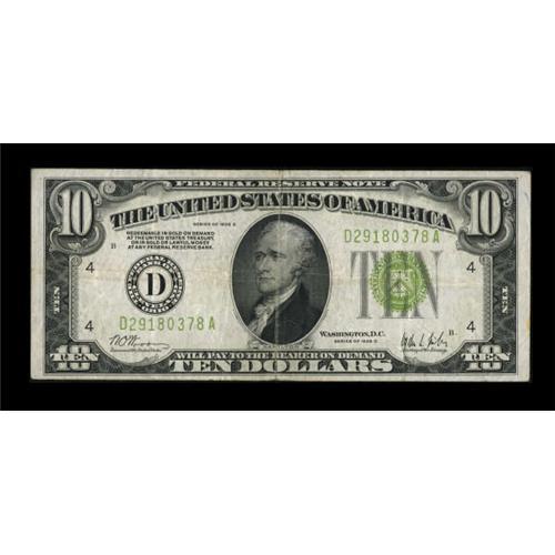 Fr. 2003-D $10 1928C Federal Reserve Note. Very