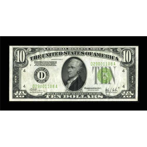 <B>Fr. 2003-D $10 1928C Federal Reserve Note. Extremely Fine.</B></I><BR> Here is a rare and underrated note that remains elusive . It is a nice mid-grade piece with decent margins and that displays several folds.<BR><BR><b>Shipping:</b> Coins & Currency (<a target="_blank" href="http://www.heritageauctions.com/common/shipping.php">view shipping information</a>)