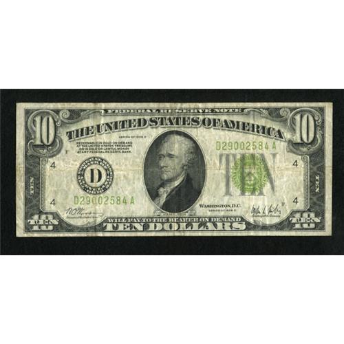 <B>Fr. 2003-D $10 1928C Federal Reserve Note. Fine+.</B></I><BR> This is an evenly circulated example from the very seldom seen Cleveland district for the 1928C Series.<BR><BR><b>Shipping:</b> Coins & Currency (<a target="_blank" href="http://www.heritageauctions.com/common/shipping.php">view shipping information</a>)