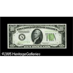 <B>Fr. 2004-A* $10 1934 Light Green Seal Federal Reserve Note. Choice Crisp Uncirculated.</B></I><BR>Fresh and well centered, this bright Boston Star misses Gem status by a few trivial handling indications and is superior to what we typically see labeled as the higher grade. Lot:16015