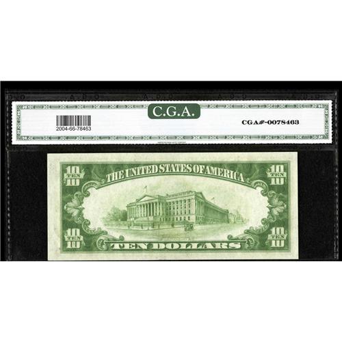 Fr. 2004-K $10 1934 Federal Reserve Note. CGA Gem Uncir Fr. 2004-K $10 1934 Federal Reserve Note. CG
