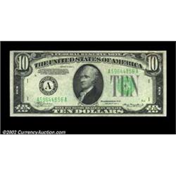 Fr. 2006-A $10 1934A Mule Federal Reserve Note. Crisp Uncirculated.There is a small stain in the upper right corner that prevents a higher grade. Important notice: We expect to be auctioning lots at the rate of 200-250 per hour. Sometimes eBay Premier live bid software cannot keep up with that pace, so we strongly recommend that you place a realistic proxy bid now as insurance to avoid disappointment. Also please note that all Heritage/CAA lots purchased through eBay Premier carry a 20% Buyer's Premium. Please make sure you read the Terms and Conditions.