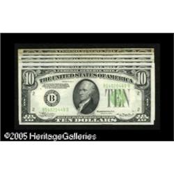 <B>Fr. 2006-B, B*, C*, G (2), I $10 1934A Mule Federal Reserve Notes. Very Good or Better.</B></I><BR>One Chicago note grades Choice CU, and the other regular notes grade Fine to XF. The stars grade VG, and only one Philly star is documented in the Oakes reference. This C* will claim the low serial number position.<BR> 6 notes Lot:16026