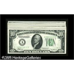 <B>Fr. 2007-A, B (2), C, F (2), G, H, I, J, K, L $10 1934B Federal Reserve Notes. Near Complete Regular Block Set.</B></I><BR>Two-thirds of the notes are at least <B>Choice Crisp Uncirculated,</B></I> with three of the notes grading AU, and another VF. Each note is a different block in this offering, with the L-B note sporting the ink courtesy signature of Fred M. Vinson above his engraved signature. There are only two blocks missing, and those are Cleveland and Richmond blocks.<BR> 12 notes Lot:16028