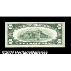 Fr. 2007-H* $10 1934-B Federal Reserve Note. Gem Crisp Uncirculated.Crackling fresh, well centered, and utterly original, a beautiful example of this scarce star. <BR><BR><B>Important notice:</B> Heritage usually auctions material at the rate of 200-250 lots per hour. On some occasions eBay Live bid software or the Internet may not be able to keep up with the pace of the auction. We recommend placing a realistic absentee bid now as insurance to avoid disappointment. Occasionally the auctioneer may eliminate or reject an eBay Live bid, and the auctioneer may also reopen a lot after the close of the eBay live bidding (usually because we missed an audience bid), and may reject your bid even if it shows you as the winning bidder. By bidding via eBay Live, you agree that Heritage may award the lot to another bidder at its sole discretion under the circumstances described above or any other reasonable circumstances. Since eBay bids are not shown to us until we open the lot on the floor, we treat those bids just like floor bids. In most cases the floor responds before the eBay bid is presented to us, due to Internet lag time, so for consistency we have made it a policy that floor bids are always considered first over tie eBay live bids. Also please note that all Heritage lots purchased through eBay Live carry a 20% Buyer's Premium. Please make sure you read the Terms and Conditions before you bid. <BR><BR><B>IMPORTANT ANNOUNCEMENT ABOUT RESERVES:</B> Heritage now divulges all reserves on its web site 7 days before every auction. If you want to know whether the reserve on this lot has been met, and if not, what the reserve amount is, please visit this lot page on the HeritageCoin.com web site, or email: bid@HeritageGalleries.com