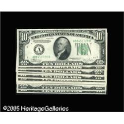 <B>Fr. 2008-A-L (17) $10 1934C Federal Reserve Notes. Complete Regular Block Set. Choice Crisp Uncirculated or Better.</B></I><BR>Over half of the notes are Choice CU, with the remaining notes ranging in grades from Fine to AU.<BR> 17 notes Lot:16030