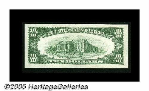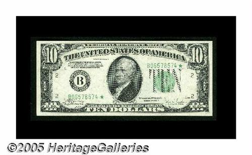 <B>Fr. 2008-B* $10 1934C Federal Reserve Note. Gem Crisp Uncirculated.</B></I><BR>A crackling-fresh and perfectly centered star example likely to easily exceed its $300 Oakes catalogue value in Uncirculated.