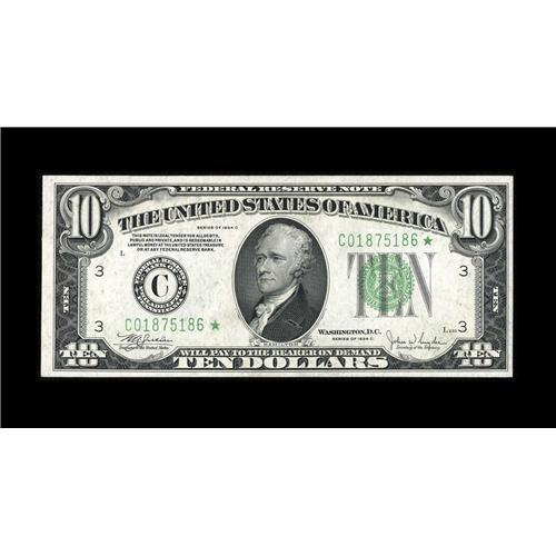 <B>Fr. 2008-C* $10 1934C Federal Reserve Note. Very Choice Crisp Uncirculated.</B></I><BR>This is a pleasing replacement note from the Philadelphia district.<BR><BR><b>Shipping:</b> Coin/Currency (<a target="_blank" href="http://www.heritageauctions.com/common/shipping.php">view shipping information</a>)